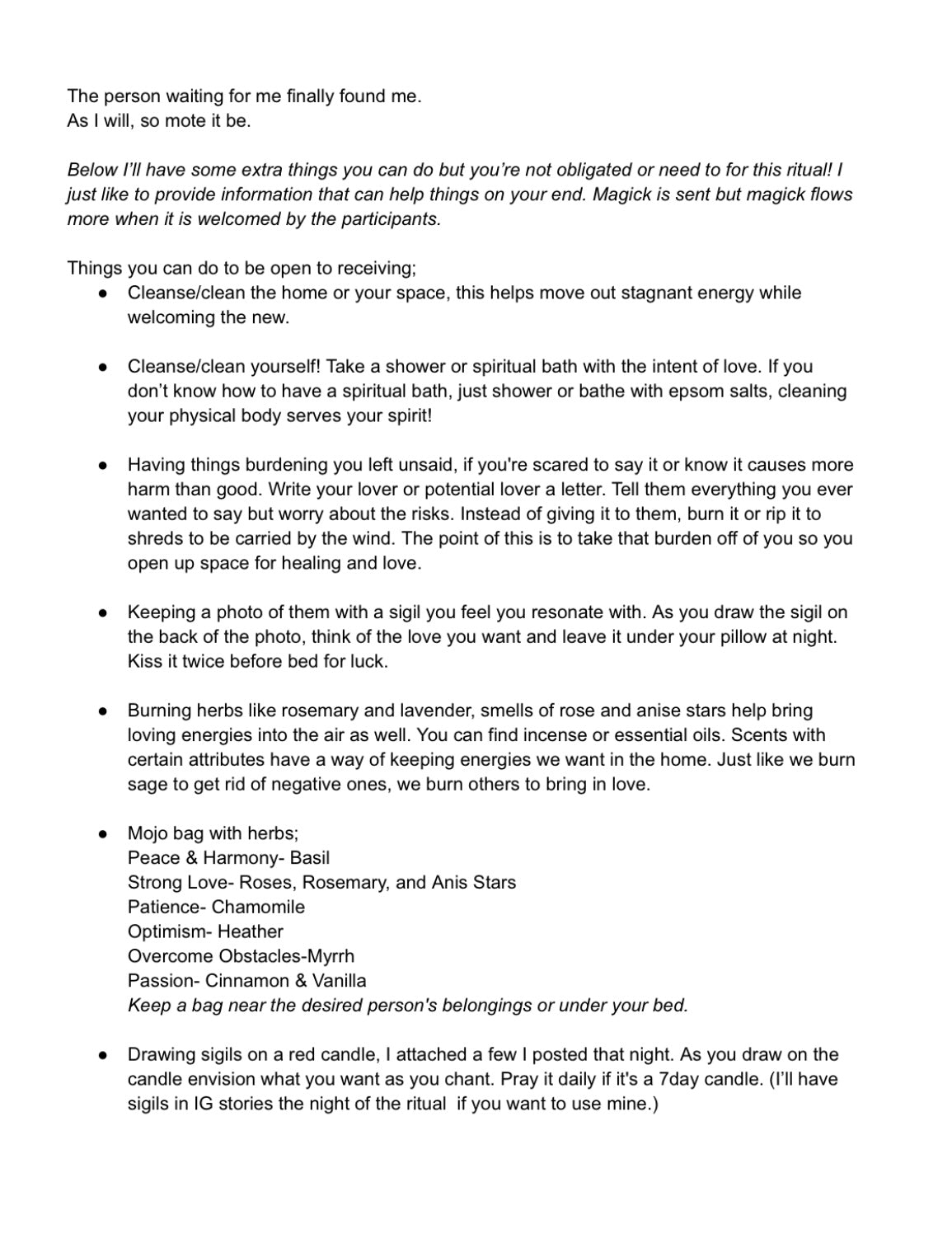 If you're currently getting work done by other witches/spiritualists for the same exact thing, WAIT! Let one play out, you're crossing too many energies and workings can cancel each other out.