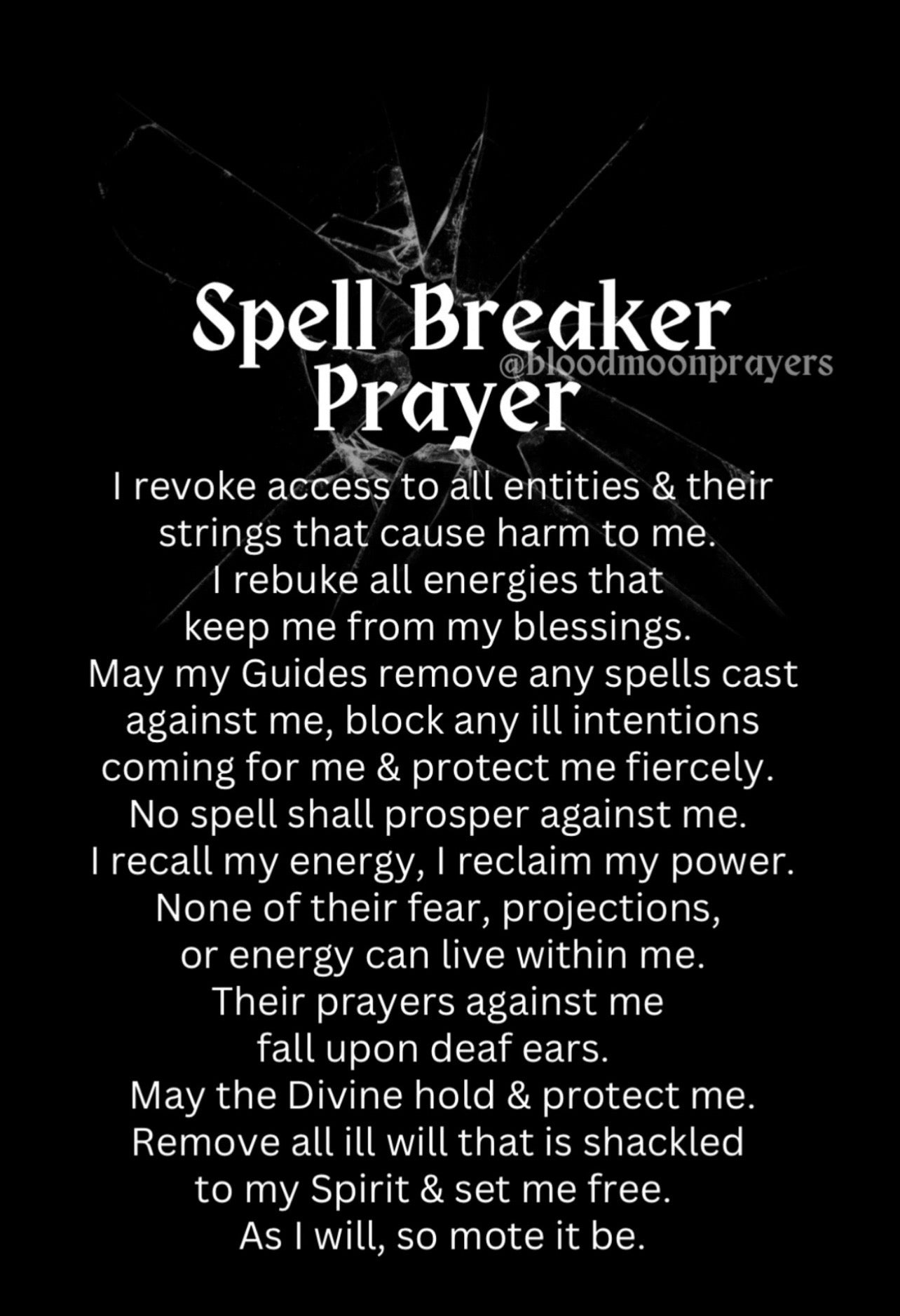 This isn't to break spells you do for yourself or others. Meaning it’s only to break spells against you.
